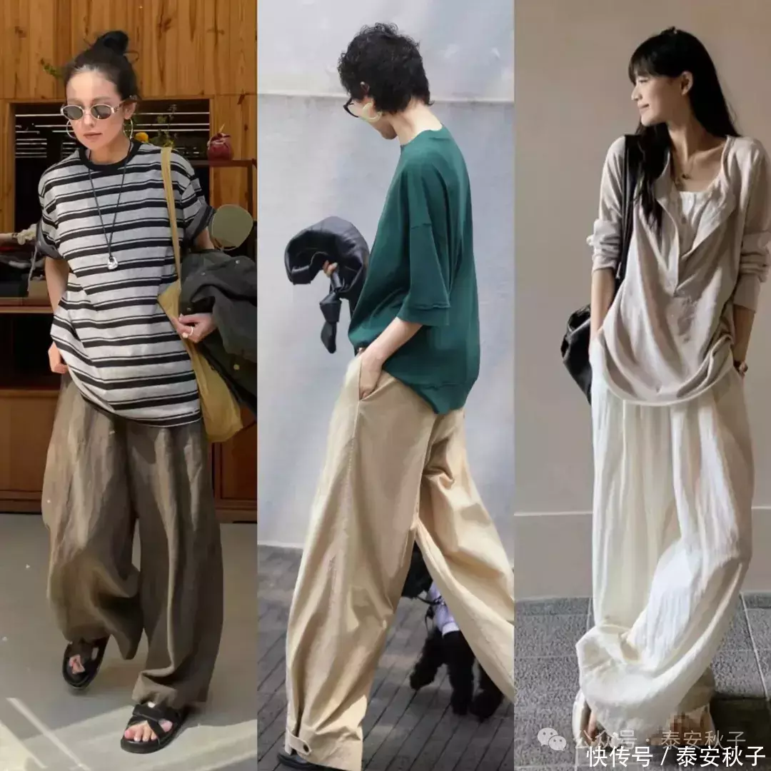 有很多4、50+的女生,为了将大腿上的赘肉遮挡住,就爱选那种又肥又长的oversize阔腿裤。