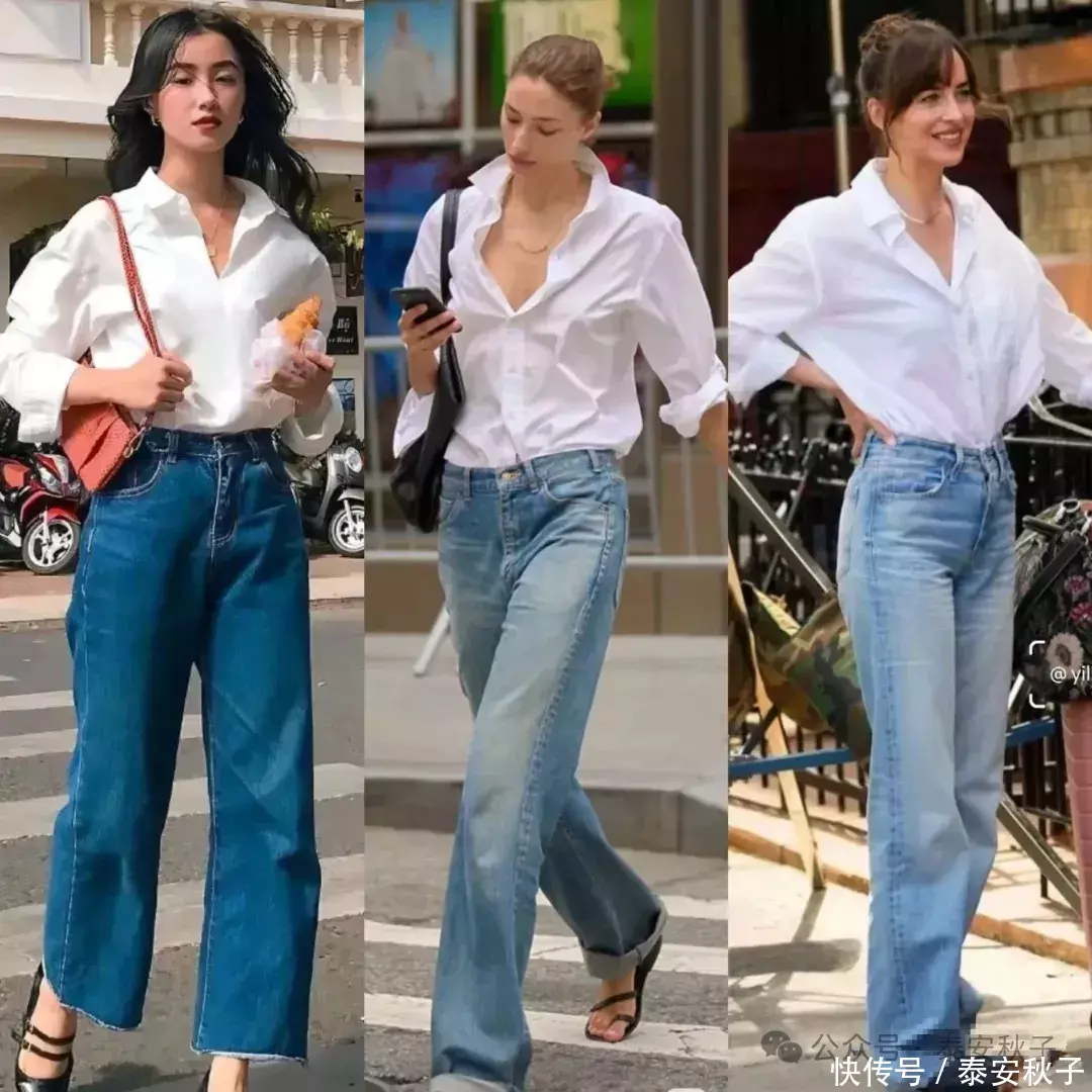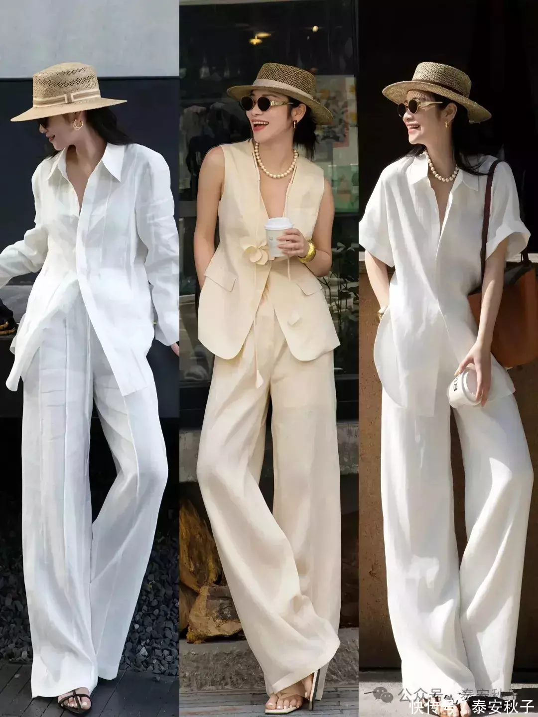 尤其是这种同色系的衬衫+阔腿裤,直接就火出了圈!